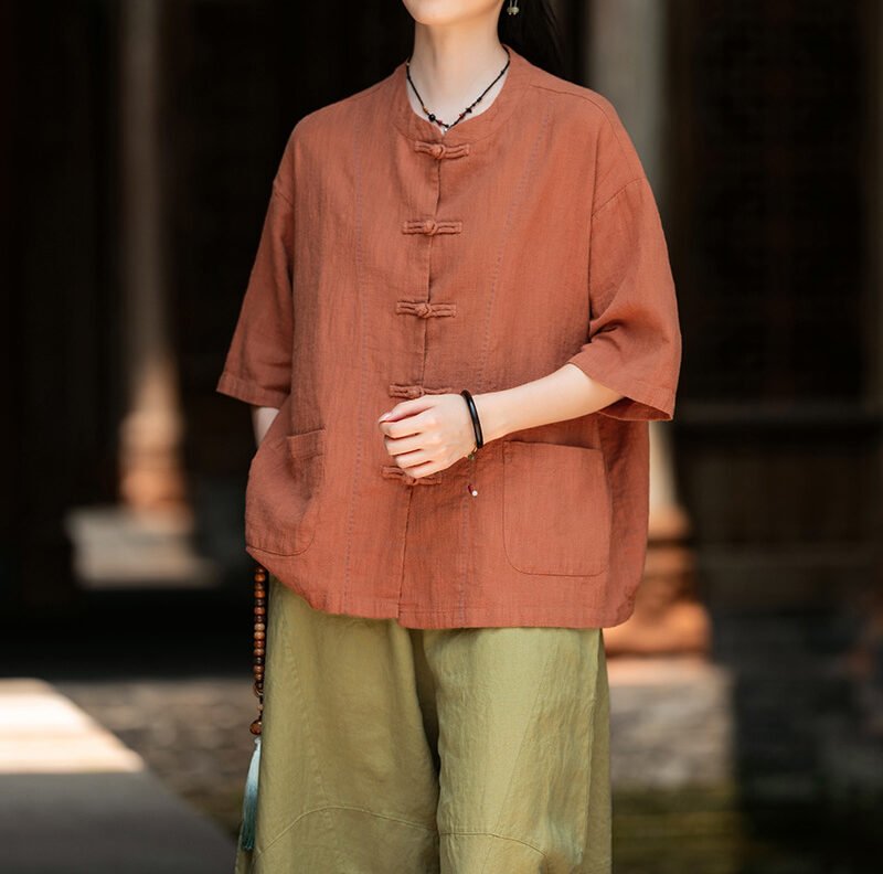 | Color | Dark green (short sleeve), Linen color, Vintage orange |