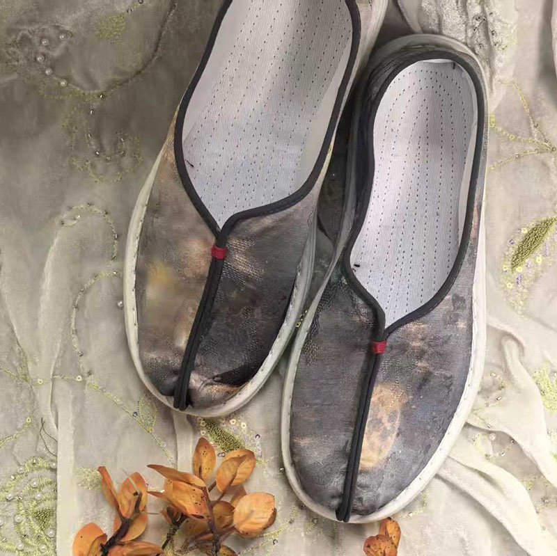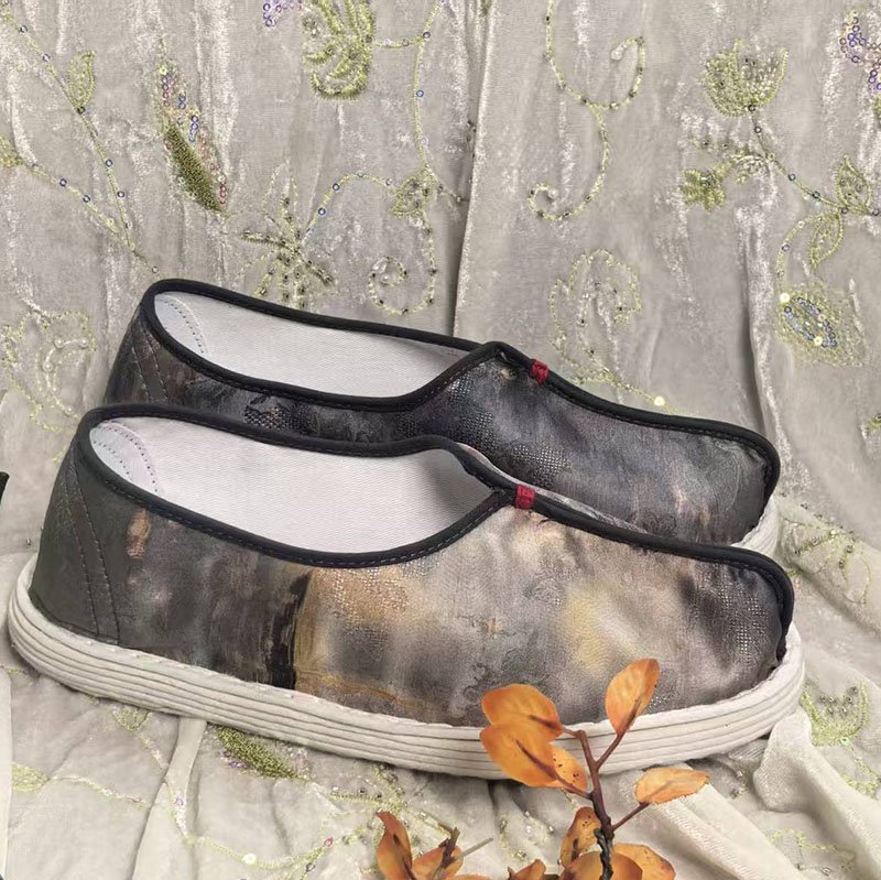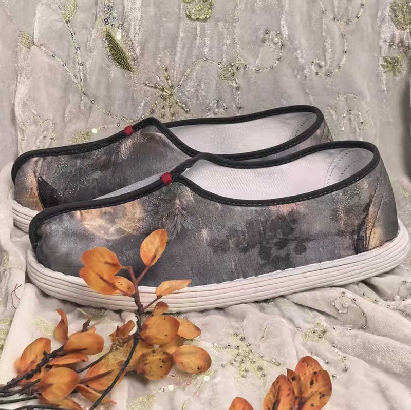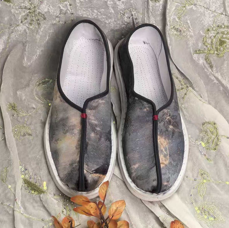 & Free delivery in certain areasOld Beijing style cloth shoes for men and women. Handmade thousand layer sole, breathable Chinese wind design with vintage ink painting pattern. Classic retro.