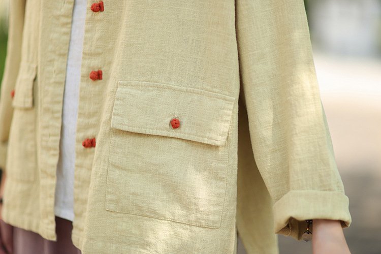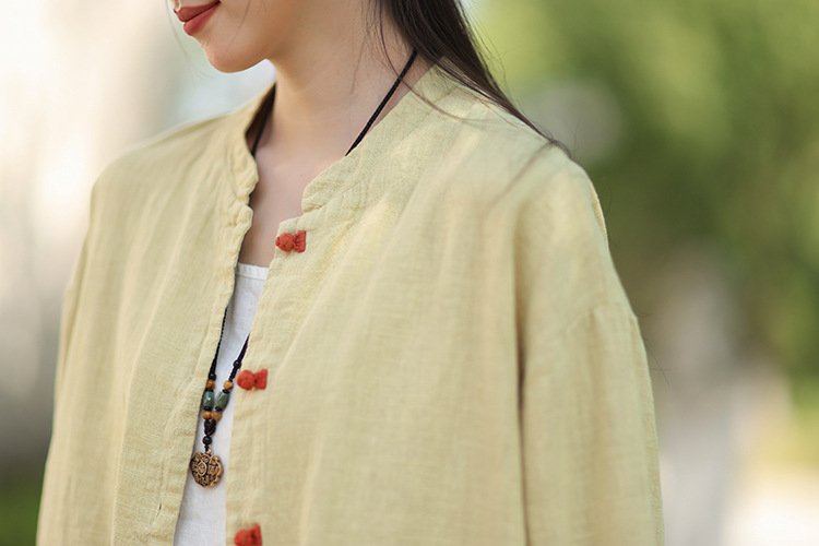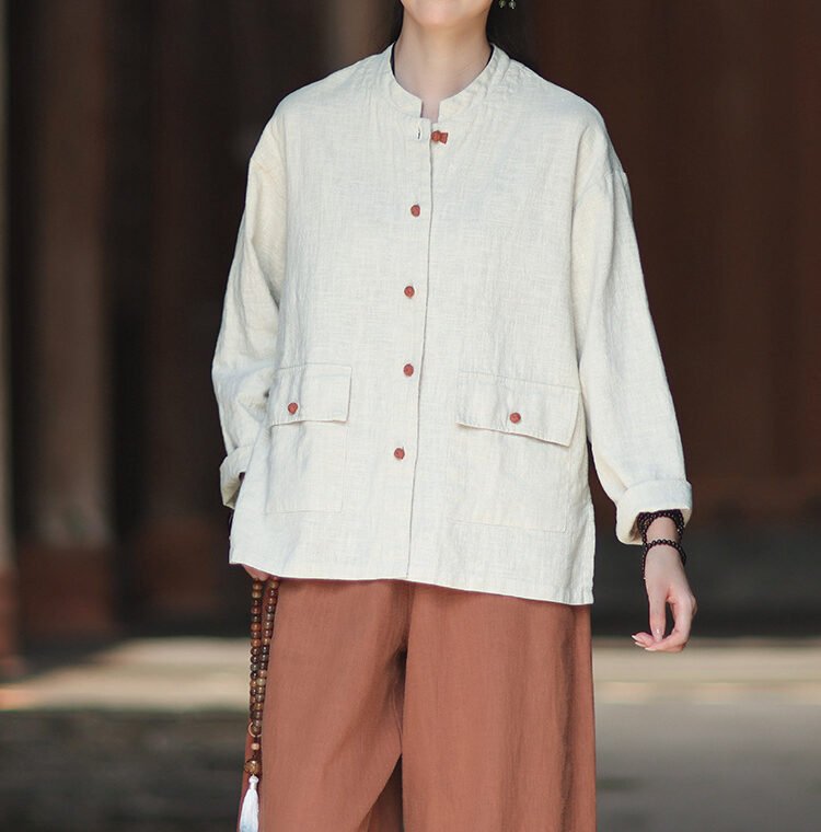 Woman’s cotton and linen shirt with buttons and loose-fitting top