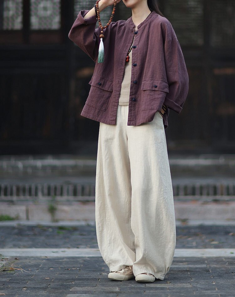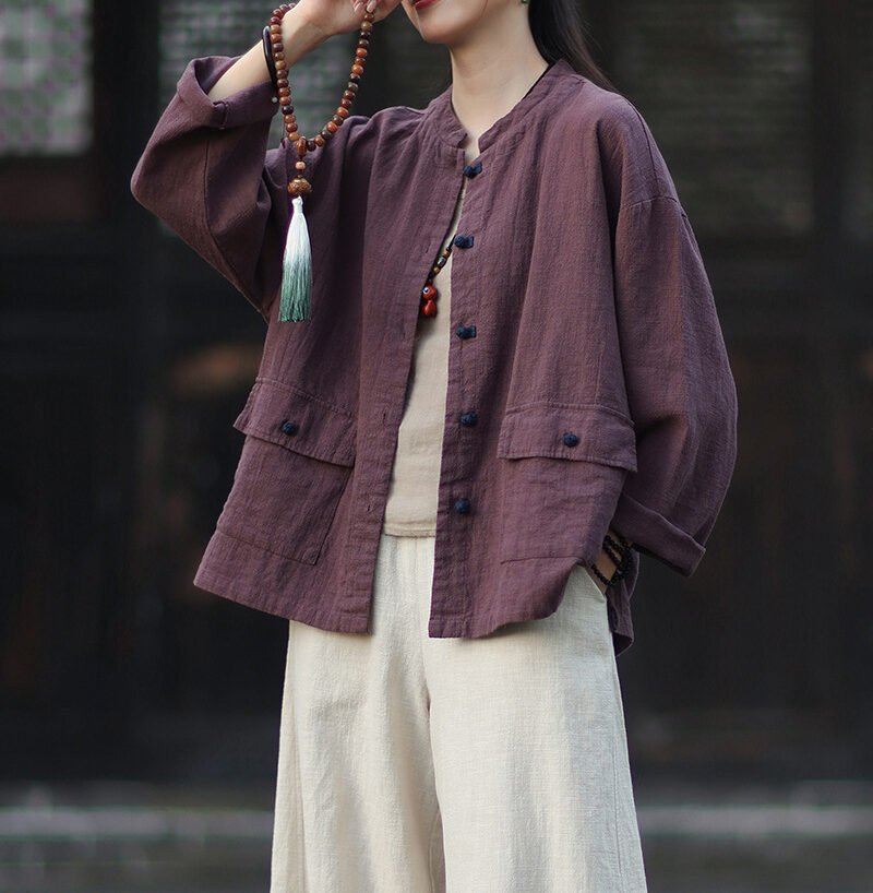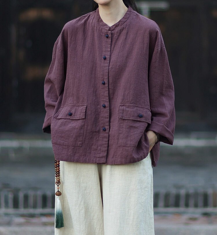 Woman's cotton and linen shirt with buttons and loose-fitting topWoman’s cotton and linen shirt with buttons and loose-fitting top