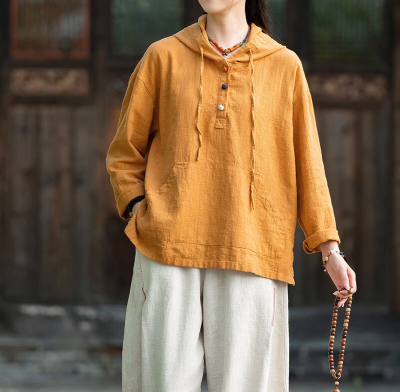 Effortless open-front layer with quiet Eastern elegance. Lightweight and breathable for all-day ease. Relaxed fit, three-quarter sleeves, tie-front detail, and oversized patch pockets create a soft, flowing silhouette that moves beautifully.